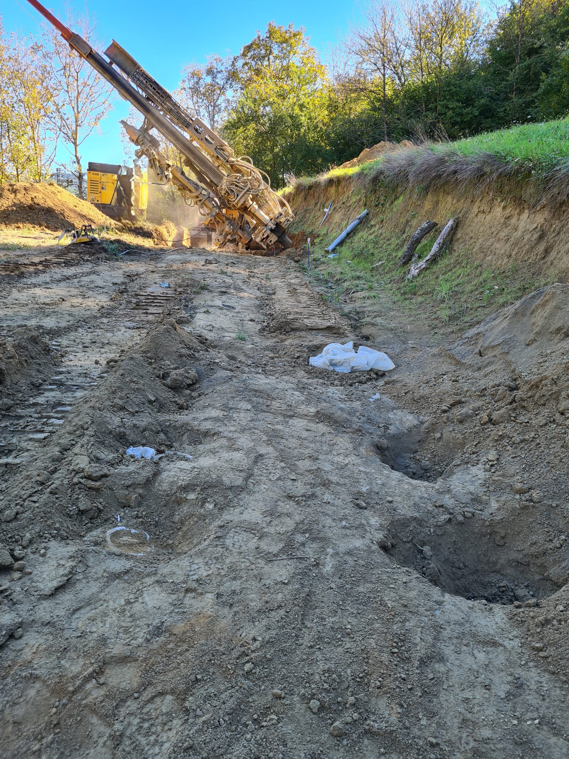 E’ stata ultimata la realizzazione dei micropali verticali e sub orizzontali per la realizzazione della paratia tirantata a protezione della vasca da realizzare.