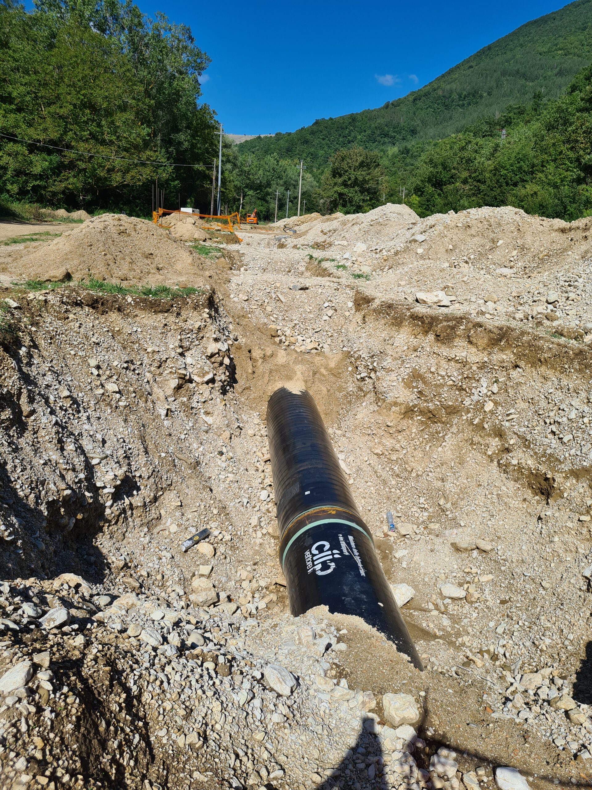 E’ stata predisposta la pista, che dalla Salaria arriva fino al fiume Tronto, lungo la quale verrà posta in opera la nuova tubazione